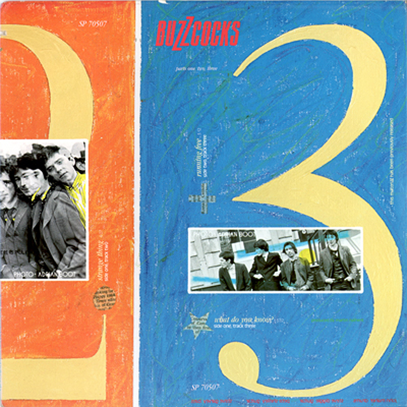 Buzzcocks “Parts One, Two, Three”. I.R.S. Records, 1980. Produced by Martin Hannet. Cover art and design by Carlos Grasso. Photos by Adrian Boot and Chalkie Davies.