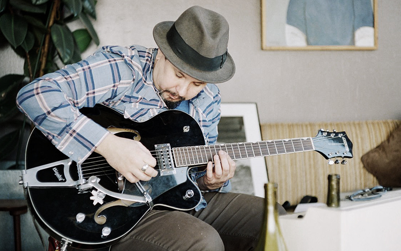 James Slay tries to coax a gentle weep out of his guitar during a Dumfuxx rehearsal sometime in 2012. Photo by Eric Gorfain of The Section Quartet.